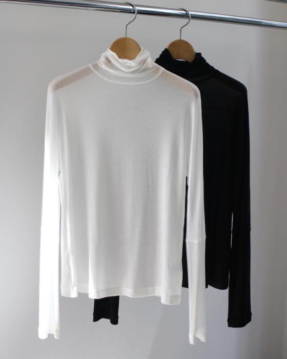 上品な肌触りのハイネックドルマンスリーブTシャツ。