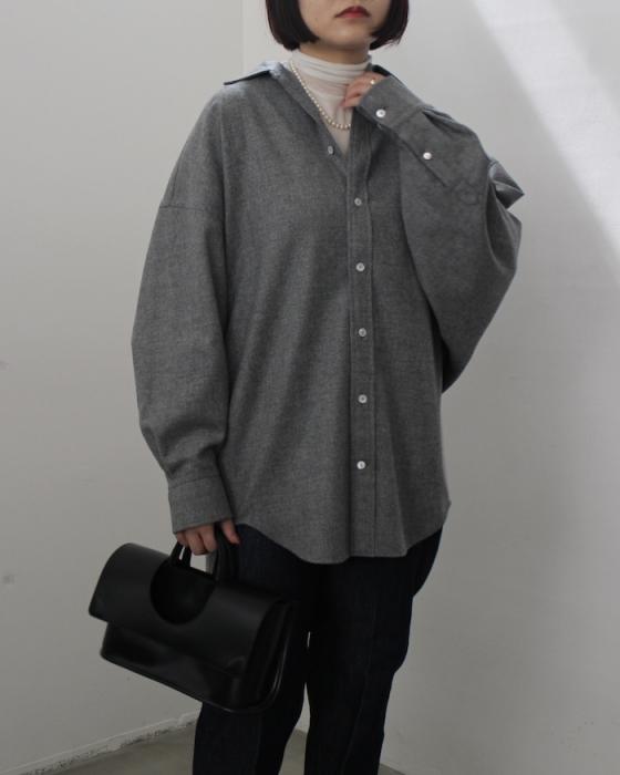 シャツ、スウェット、ニットとのレイヤードなど万能な一枚です。