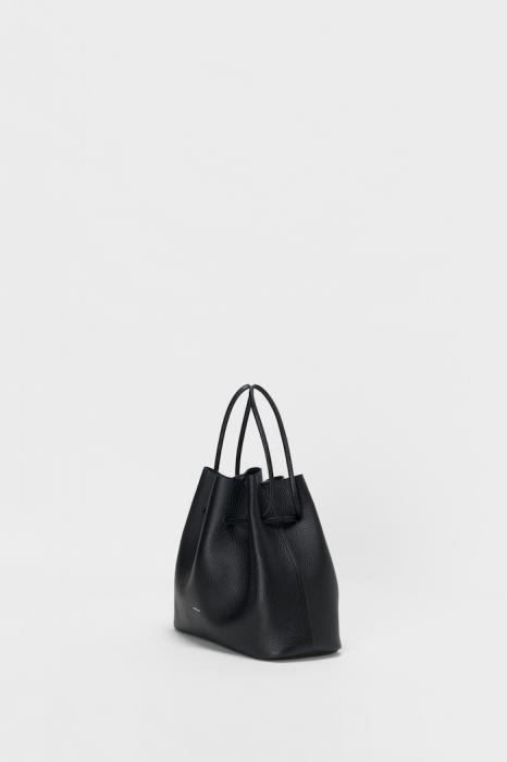 両端から引くと丸みのある巾着型となりラフな印象で持つ事ができ、