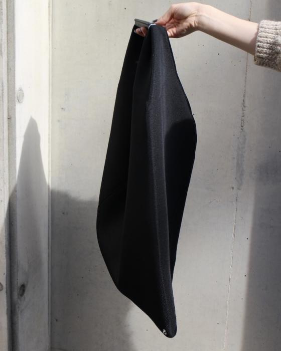 バッグの縁にはスナップボタンが2つ付いており、折りたたむことでバッグの形を変えることができます。